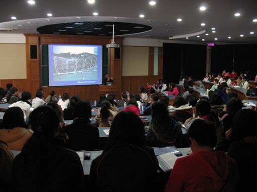 在讲座中,钱锟教授以其亲身经历生动形象地描述了圣地的历史,千年里所发生的巨大变化。概述了圣地及周边城市的风土人情,大大开阔了同学们的视野。钱锟教授幽默而风趣的话语时不时地给现场带来愉快的欢笑声。生动细致地介绍了旅途所见的风土人情,并在对当地人们的生活习惯和宗教信仰上做了着重分析。通过自己的所见所闻以及对异乡文化的睿智思考。钱锟教授使在场的同学深深地体会到了西方的文化。在一幅幅生动真实的照片中、幽默的语言里以及教授的实地经历中,钱教授带领着大家游览了圣地耶路撒冷的神圣和神秘历史,领略约旦河沿岸的美好风光,了解犹太教的错综复杂以及当地人们的生活和教授旅游当地的亲身感受,不乏幽默的语言引起一阵阵笑声,会场气氛融洽而又温馨,仿佛渊博的长者讲述着远古的故事那般令人向往而专注。