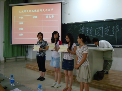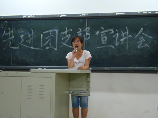 此次大会分为两部分。首先进行的是“先进团支部”的宣讲会,第一个进行宣讲的是来自07(1)班团支部的代表梁龙同学,梁龙同学极具感染力的口才和一番慷慨激昂的演讲使得场下掌声阵阵,为此次大会做了良好的开端。接下来的各团支部代表依照抽签顺序上台为大家介绍自己支部的详细情况,从支部优秀成员的表现、支部举办的各式各样有意义的活动、支部的学习和生活等等,场下的老师同学们时常会为他们的介绍所感动着。