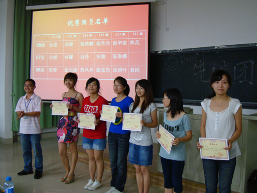 宣讲会很快就告一段落了,学工部陈冰洁老师做了总结讲话,陈老师说,这次英语系团总支举办的“两优一先”评选活动办得很好,体现了英语系良好的学风和英语系的特色,她还特别指出让她印象深刻的一个“低调的”团支部,她欣赏脚踏实地的学生,陈老师最后希望英语系能够通过此次活动,培养英语系全面的复合型人才,为厦门大学嘉庚学院尽自己的绵薄之力。