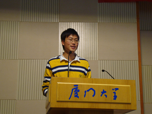 副书记梁龙向在场的观众简单介绍了团总支过去一年的成长历程。同时对过去一年对团总支有巨大贡献的个人表示感谢。在梁龙同学诙谐的言语中,同学们深深了解了团总支的成员们在过去的一年里充实、忙碌并快乐地工作着。在对团总支的美好祝愿下,梁龙同学结束了他的发言。