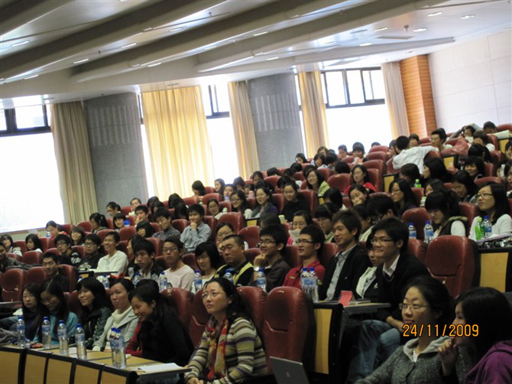 大会在英语系执行主任杨昆老师的发言下结束,杨老师对同学的的暑期活动给予了高度赞赏,同时她也对即将到来的新一轮暑期实践活动充满期待……杨老师还特别感谢学院提供给大家的实习机会,同时也向在场同学重申了学院的办学宗旨,突出强调实践是学院的特色,实践的重要性。