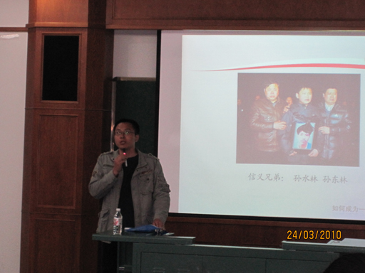 “如何成为一名优秀的团干部?”为了更生动的引入今天的主题,易老师与在座的同学分享了两个故事:信义兄弟的讲信用与新疆乌孜别克族的兄弟夏米尔夏克尔的无私奉献。他们,为我们成为一名合格的共青团员树立了良好的典范。