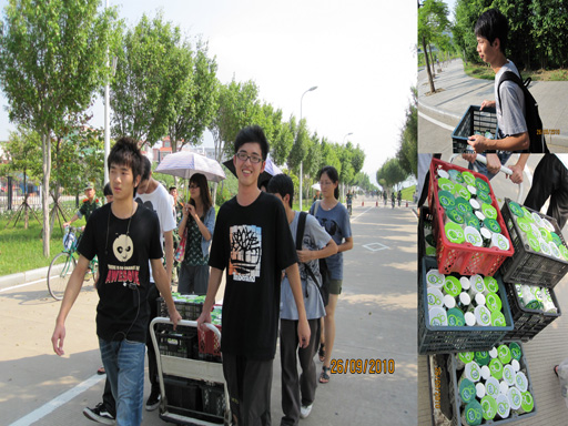 为了给正在接受军训考验的英语系10级新生带去关怀与鼓励,9月26日下午,在团总支副书记黄筠筠的带领下,团总支第三届核心成员顶着炎炎烈日拖运爱心绿茶前往主教学楼、风雨球馆、北区操场等几个我系新生军训点慰问新生!