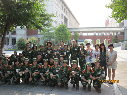 在夕阳的挥别下,此次慰问军训新生活动圆满结束!最后让我们共同期待英语系10级新生能在军训阅兵场上有不俗的表现!