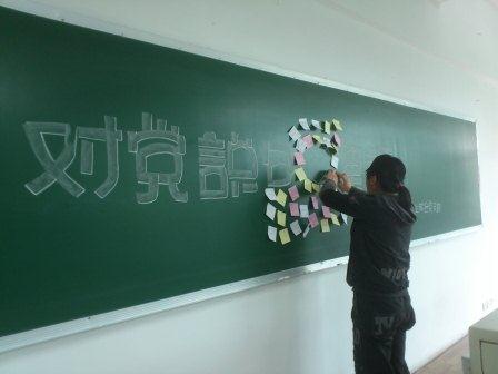 会议首先由李婧老师向全体党支部成员发出号召,在老师的提议下,党支部全体成员纷纷挥动手中的笔杆,将自己心中最想对党表达的情感写在纸片上,并依次贴至黑板。随后,多名党员代表分别从多个角度分析了党成立90周年以来带给我们的变化,并结合自身实际学习,工作情况,和党支部其他成员进行了深入的交流与探讨。至此,此次专题活动也在和谐轻松的氛围下落下帷幕。