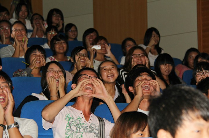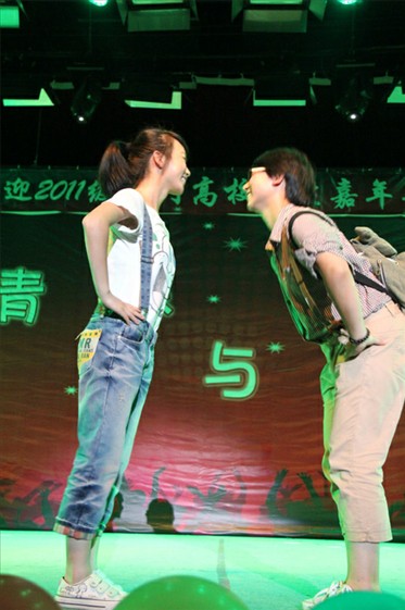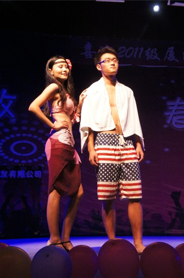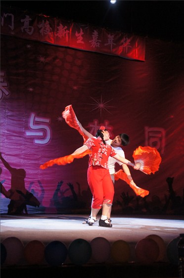 紧接着便由三系新生来为大家带来一个又一个的精彩节目。在各系老师同学倾情献唱中,环科系主任卢昌义老师一首《爱拼才会赢》带动了全场气氛;而三系新生的青春活力的街舞秀、激情四溢的肚皮舞以及时尚美丽帅气的模特秀更是把现场气氛推向了高潮;还不时穿插有主持人的互动环节,新生同学们获得了精美的纪念品。晚会的最后,全体同学一起唱响《倔强》,由此11级三系迎新晚会便完美落幕了。