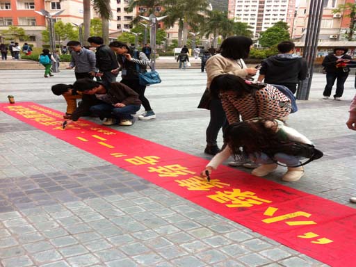 2012年12月12日,厦门大学嘉庚学院英语系团总支“预祝英语系团总支‘小绿集结号’一二·九活动成功”横幅签名活动于中午11点30分在北区步行广场举行。