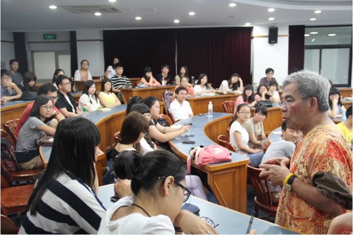 一段时间过去了,讨论依旧有分歧,此时两名女孩上台献唱,她们是Steve的特邀嘉宾,《彩虹》虽是很老的歌,但并没有觉得不合今天的气氛,反而给现场增添了一份愉悦。此后,讨论更为深入,Steve经常走下台来聆听同学们的意见,他时而开怀大笑,时而觉得有些同学说得很精辟而拍手称赞。最终,双方都坚持自己的观点,虽然没有得到统一的结果,但是同学们得到了一次交流的机会,一次阐释自己内心见解的机会,这就是talk show的真正目的。“很开心,每次talk show我都有来,每次都有不同的收获”刘同学如是说。