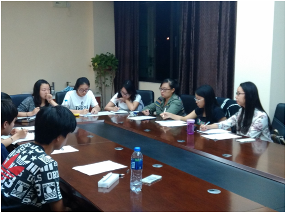 11月9日晚,在主一的两间会议室里,Speaking Loud开展了2015级招新复试。复试依然采取无领导小组讨论形式,由大二、三的优秀组员担任面试官,在讨论结束后分别推荐突出的选手加入团队。共有六位同学得到了面试官的推荐,他们分别是:唐子乔,杨��,张洁怡,张智瑞,李诗颖,李佳辉。